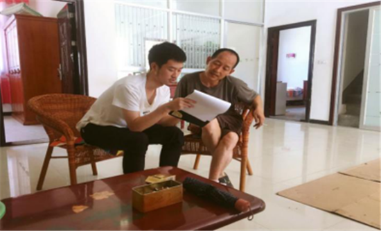 队长郑凯轩对村民进行入户调查