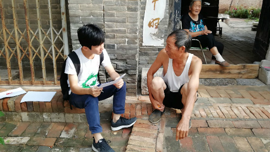 原本炎热的天气似是因体恤队员们而意外凉爽起来,宜人的天气让原本便精神饱满的队员们更是干劲十足,大家马不停蹄地向调研地点出发。小队到许庄镇时还是在清晨,本以为村民还在休息,调研可能不会顺利展开,到了村子才发现,勤劳的农家人早已开始了一天的生活。队员们也不敢懈怠。立刻分成三个小组分别前往村子的三个不同方向开展调研。村民的热情帮助我们克服了方言的障碍,使得调研开展的十分顺利,对于问卷的内容,村民回答得也很积极。