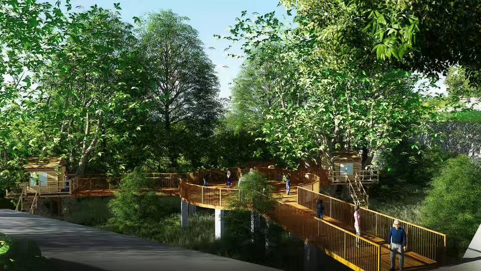 目前,园区内的水上餐厅、树屋群落、荷塘月色、观景台等特色景点也正在施工建设。周边的村民对观光园满怀期待,不时来查看建设情况,大家都盼望着奇果生态园能早日竣工。