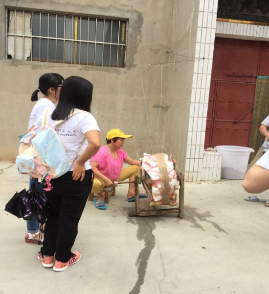 志愿者观察麻绳制作
