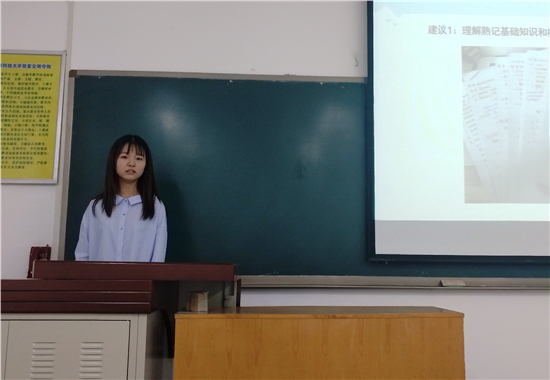 为引导学生树立正确的学习目标与方向,提高学生学习的能动性与积极性,9月29日下午,营销171班在北校区八号教学楼教室成功举办了第一次学习经验分享会,特邀营销专业15级优秀学生王依凡进行学习经验分享,在场学生反响热烈,纷纷表示获益匪浅。