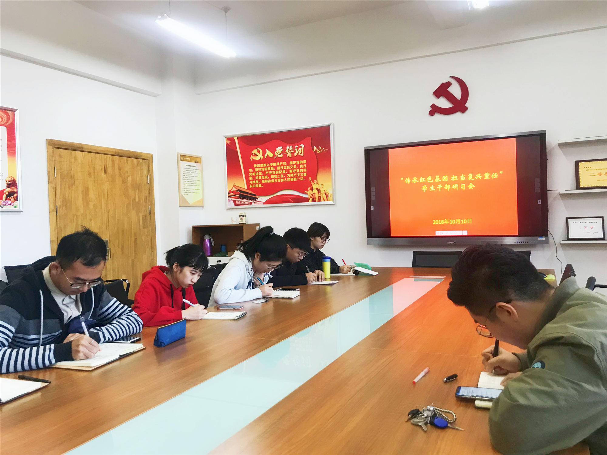 随后,辅导员张鹏飞带领主席团全体成员共同学习“传承红色基因,担当复兴重任”主题教育活动中要求的相关理论知识,领学了《关于在学生中开展“传承红色基因,担当复兴重任”主题教育》有关通知文件,阐述“红色基因”重大意义和科学内涵,并要求学生干部自觉坚定红色信仰,传承红色基因,践行红色精神。