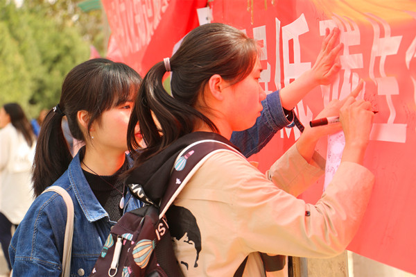 活动初期,学院有序布置活动场地,积极准备宣传海报,展开“提倡低碳生活,共建绿色校园”主题活动。活动期间,学院志愿者热情地向路过同学发放海报,并耐心讲解此次活动的主题以及告知宣传目的,同学们踊跃参与横幅签名,并表示定会积极响应号召并付诸行动,整个宣传活动约一小时,数十张宣传海报顺利发放,横幅签名效果显著。活动后期,实践部副部长李竹青对此次活动做出总结,并宣布此次活动圆满结束。