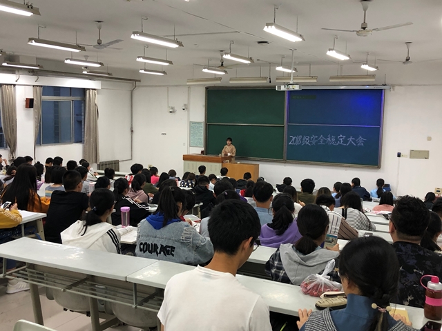 5月28日,学院2018级在N8T05教室召开安全稳定教育大会,18级辅导员主持会议,全体班长支书和宿舍长参会。