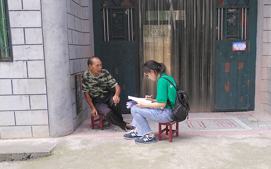 队员分为三组进行问卷调查。在调研过程中,队员们遇到诸多问题:农村现居住的村民多为老年人,很多老人不识字,语言沟通有些许困难,并且村民居住分散,降低了调研速度。虽然遇到如此多的困难,队员们依旧热情不减,在烈日下积极走访每一户村民,耐心地将问卷上的问题逐一向村民询问、解释。