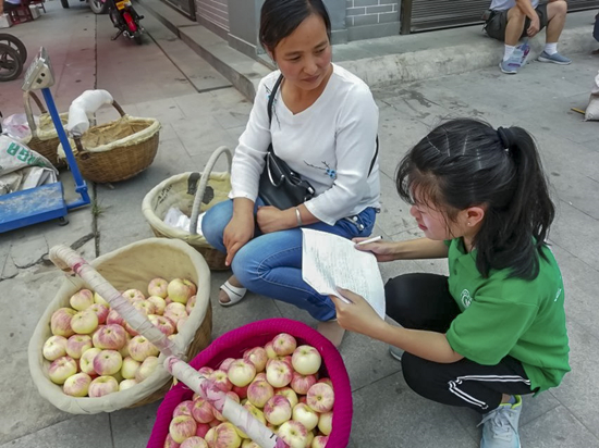 队员们在杨村、乔家底村和毕公村等以猕猴桃为主要经济作物的村落进行了实地走访。通过和农户的沟通交流,队员们了解到,杨村人均一亩地,乔家底村人均约有七分地,在这个猕猴桃还未成熟的季节里,需水量较多,大概需要每五天灌溉一次。当地猕猴桃的主要销售方式是经销商上门取货,价钱因品质而不同,有3~4元/千克和4~5元/千克两个区间,猕猴桃的高产可给当地农户带去较好的经济效益。