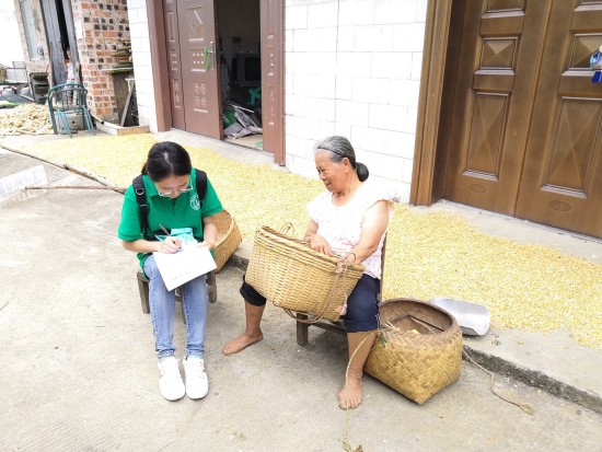 为获取更多资料信息,调研小队采取入户调查与田间参与的形式,走进家庭和田地同时开展调查。在问卷调查的过程中,一位朴素的老人引起队员们的注意。他身体不好,似乎有些耳背,满脸皱纹尽显沧桑之感。爷爷向队员们发出感慨:“当时分田的时候,大家十分兴奋,卯足劲加油干,不能饿肚子。但过了几年,这个细碎化的问题越来越明显,天天跑来跑去,耕地的时候还要考虑一下是不是自己的地,经常担忧,有时还会闹笑话,误耕他人的地说不定还会引起矛盾。现在政府照顾年岁大的老人,送来了电视机,他们也在帮忙管理家中的田地,治理很有成效。”说完爷爷便竖起了大拇指。有几家住户对土地细碎化的情况非常了解,完成问卷过程中不禁细细讲述,他们对政府引资企业承包土地种植经济作物表示大力支持。