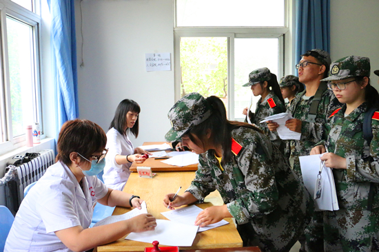 踏着清晨的清新凉爽,经管新兵们准时集结在校医院楼前。19级辅导员王冠英、李治霖全程陪同学生参与体检,在辅导员、各班主任助理、校医院工作人员与新兵们的双双配合下,本次包含抽血、胸透、测量视力、测量血压等多项内容在内的常规体检得以有序进行。清晨就要空腹身着军装来到医院抽血体检,新兵们的稚嫩脸庞上都蒙上了一层虚弱,辅导员实时关注、暖心关怀,以最快的效率安排学生完成抽血,引领学生及时就餐,补充能量。随着一个个体检项目的完成,时间已临近中午,为保证学生的身体安全,促使学生以更加良好的状态投身于后续的训练,统一通知新兵们体检过后尽早安排午餐,为新兵们空出了大量午休时间。