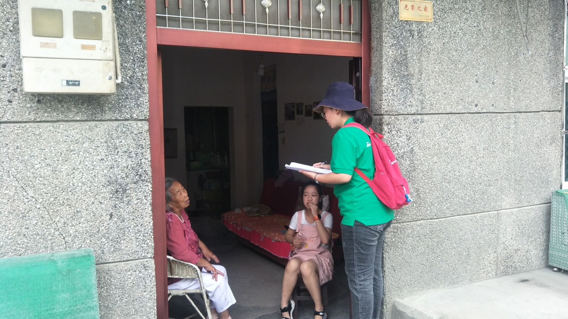 在对周边村子基本情况进行了了解之后,队伍一路向西,向五一村和银米村进发。队伍发现,五一村有308户人家,银米村有379户,都不算很大,但是村里人家较为分散,通常以2到3户聚集,这无疑为调研增加了很大难度,但是队员们不怕苦、不怕累,无论哪里,只要有农户,就有队员们的身影。爬陡山,度危桥,队员们迈着坚定的步伐,勇敢前行,走访每一户人家。队员不仅与农户进行友好交谈,还热情帮助农户修理电视等简单电子产品,可谓是“扶贫到家”。通过和农户的交流,队员们了解到,大多数农户的子女在外务工,老人无人赡养,家境比较贫困。提到扶贫工作和政策时,村民普遍表示欣慰与支持,但其真正落实到户、成功脱贫依然任重道远。