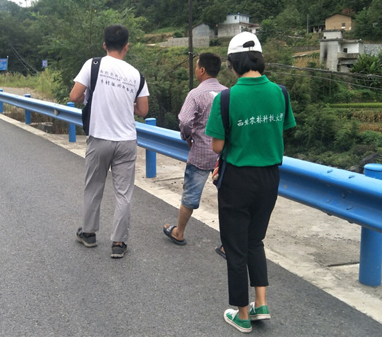 在对周边村子基本情况进行了解之后,小分队一路向西,向五一村和银米村进发。五一村有308户人家,银米村有379户,都不算很大,但是村里人家较为分散,通常以2到3户聚集,这无疑为调研增加了很大难度,但是队员们不怕苦,不怕累,无论是田间地头,还是深山断崖,只要有农户,就有队员们的身影,爬陡山,度危桥,队员们迈着坚定的步伐,勇敢前行,走访每一户人家。队员蓝一川不仅与农户进行了友好的交谈,还热情的帮助农户修理电视等简单电子产品,可谓是“扶贫到家”。通过和农户交流,队员们了解到,大多数农户子女在外,老人无人赡养,家中贫困,却并非贫困户,提到扶贫工作和政策时,人们对其深信不疑。