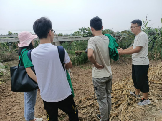 在工作人员的同意下,于当天下午,调研小队有幸参观了当地的猕猴桃种植基地,在基地中,映入眼帘的是猕猴桃树牵着长长的藤,缠绕着其它树木。它的叶子近似圆形,边缘有许多纤毛状的细齿,其上挂满了尚未成熟的猕猴桃,这些猕猴桃承载的农民的希望。在相关工作人员的介绍下,队员们了解到猕猴桃种植产业的基本情况,并发放问卷给果农们,果农们的积极配合也让调研更加顺利。此外,成员们还了解到猕猴桃种植的方法,培育技术,以及高效率的灌溉技术,智能培肥、滴管喷灌、水肥一体化等装置,实现绿色生产、加工、销售全过程,保障食品安全。