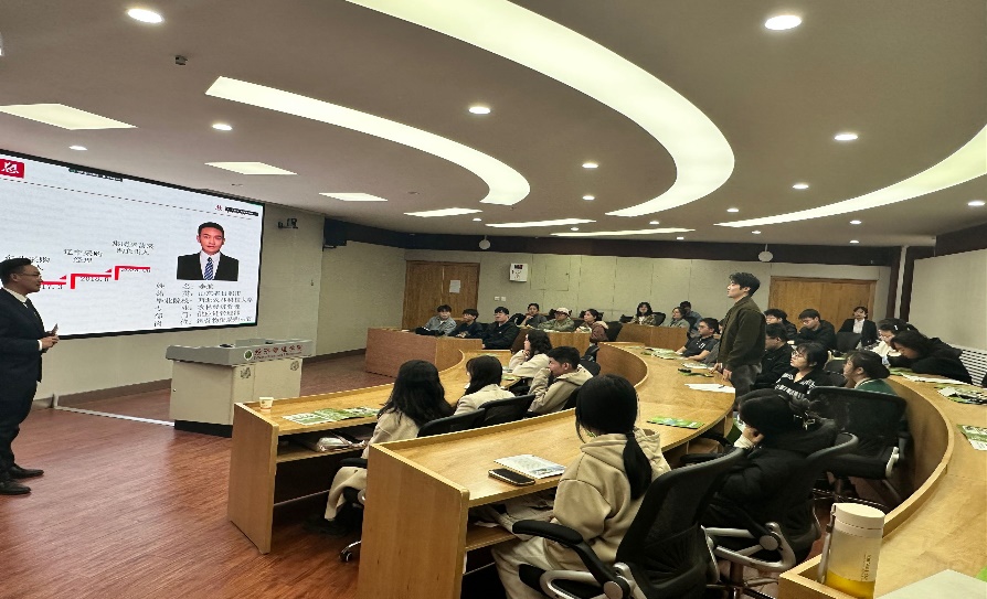 2014届优秀毕业生、牧原运营物资采购主管李航在宣讲会上回忆校园生活、准备考研后转向就业的心路历程并与毕业生们探讨未来职业规划。他分享了选择牧原公司的原因,详细介绍他所在部门业务情况以及他在牧原公司中的成长与发展等,同学们对牧原公司有了更加深刻的了解与认识。