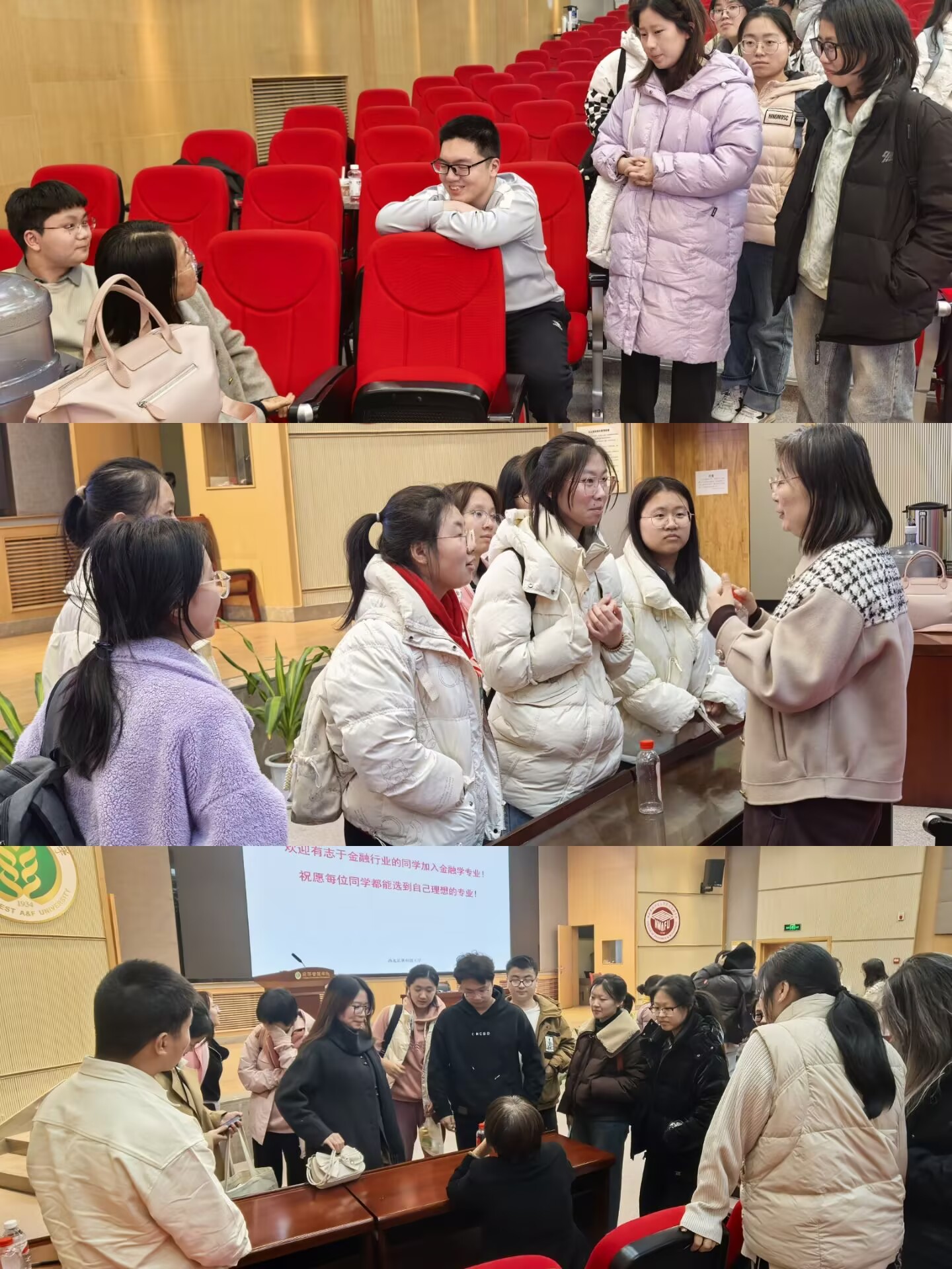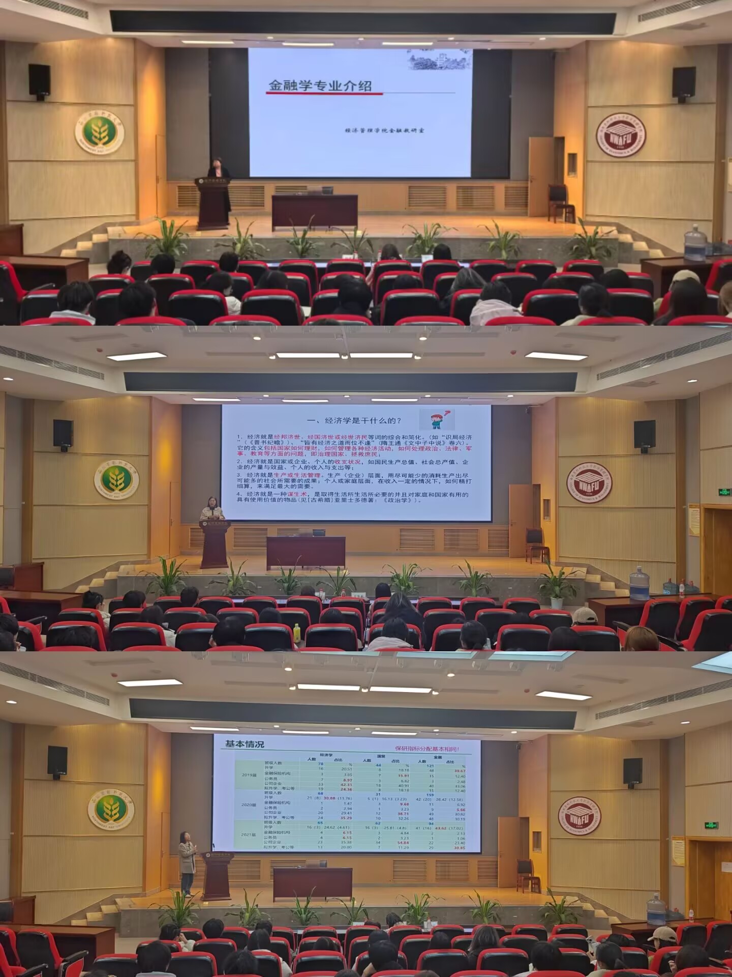 2025年2月27日晚,经济学院于经管楼报告厅c101成功举办2024级经济类专业分流讲解会。会议由辅导员王晓赫主持,董春柳、姜雅莉、杜君楠三位老师分别就国际经济与贸易、经济学、金融学三大专业进行详细解读,吸引二百余位经济类、工管类大一同学到场学习。