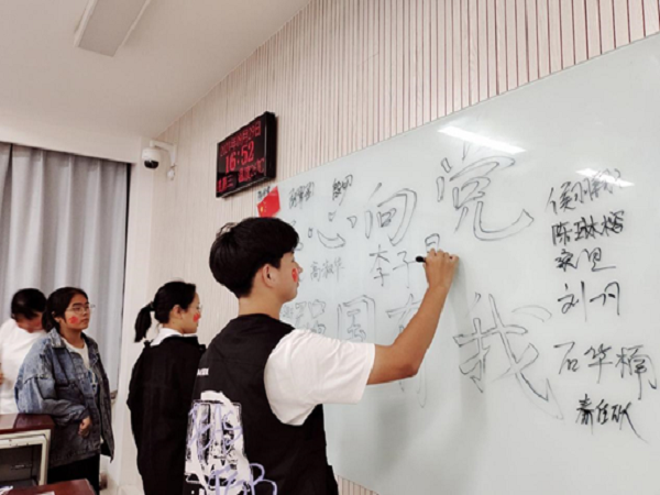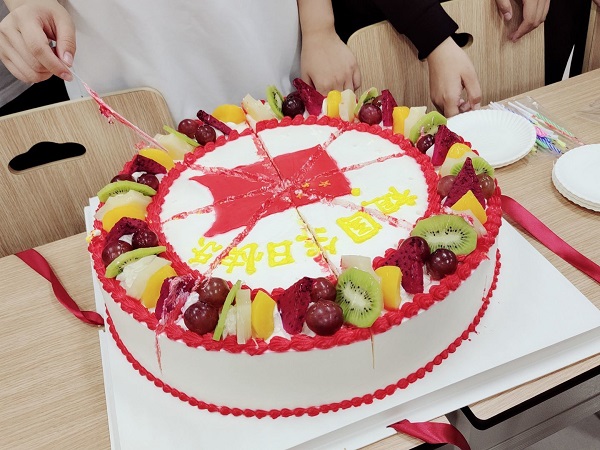 活动伊始,由张树缘同学带领大家走进詹天佑同志,了解他的爱国故事。京张铁路是詹天佑主持修建并负责的国内第一条铁路,连接北京丰台区,经八达岭、居庸关、沙城、宣化等地至河北张家口,全长约200公里,1905年9月开工修建,于1909年建成,时间不满四年,是中国首条由中国人自行设计并投入运营的铁路。之后由梅琰瑞同学指挥、张羿阳同学领唱,班级同学们合唱《我和我的祖国》,通过歌声表达大家对祖国由衷的热爱。随后大家跟随蒋雨霏通过宣誓表达爱国决心:我们会坚持四项基本原则,以“三个代表”重要思想为指导,树立科学的世界观、人生观、价值观;我们会自觉学习马列主义,毛泽东思想,邓小平理论及三个代表的重要思想,提高自己的政治思想,坚定共产主义信仰;我们会努力学习,多方面发展,为以后更好的服务于社会和国家做准备!伴随着会议气氛,大家一起品尝为祖国生日提前准备的蛋糕。