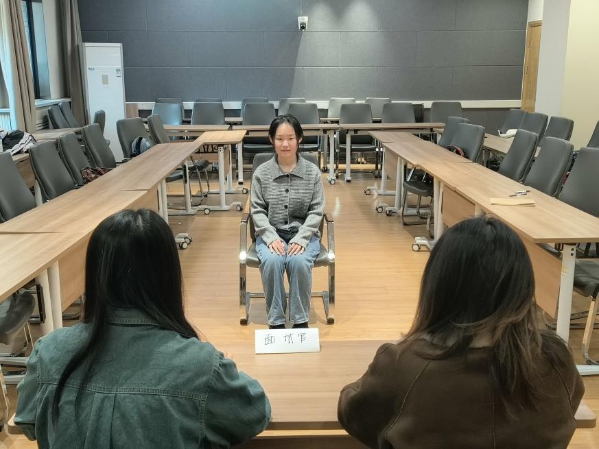 活动前期,研究生会根据学生求职意向,将参与者分为政府单位、银行、企业等7个小组,每组8-10人。各小组通过网络收集目标岗位常见面试问题,如“为什么选择我们公司”“你的职业规划是什么”“如何应对工作中的突发情况”,并提前制定模拟面试流程。活动当天,小组内成员轮流担任“面试官”与“求职者”:“求职者”按照正式面试流程进行自我介绍、回答问题;“面试官”则从表达逻辑、内容完整性、礼貌用语等方面进行点评,提出改进建议。
