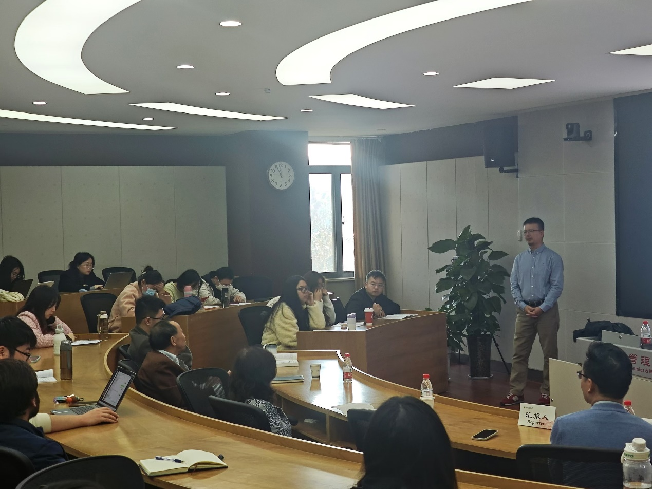 黄开兴研究员以“The Unexpected Impact of Genetically Modified Crops on Global Carbon Emissions”为题分享了其最新论文成果,针对选题背景、研究数据、实证模型、研究结果等内容展开了详细的介绍。他指出,转基因作物促进全球农业碳排放总量的增加,采用转基因作物的国家的作物碳排放强度增加更明显。互动环节,黄开兴研究员与参会师生就实证模型、数据来源与整理、农经领域选题等多个实际问题进行了深入讨论,与会师生纷纷表示本次报告受益匪浅。本次论坛对学生进行农业经济、资源环境经济等主题的相关研究以及如何探索学科交叉研究具有重要的指导意义。