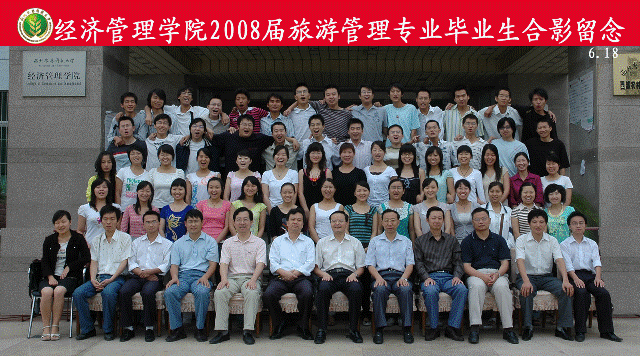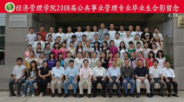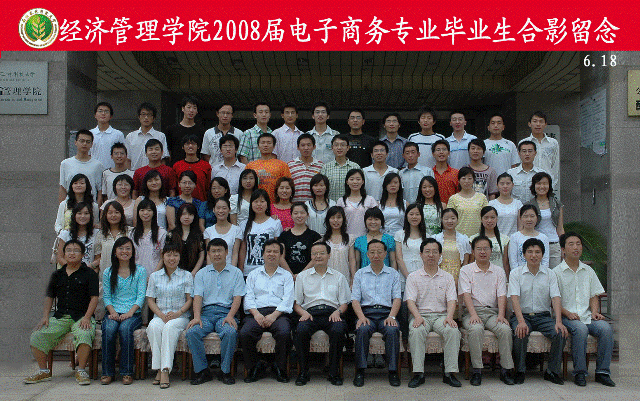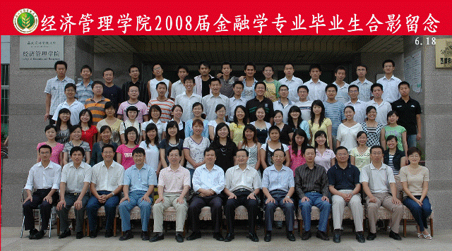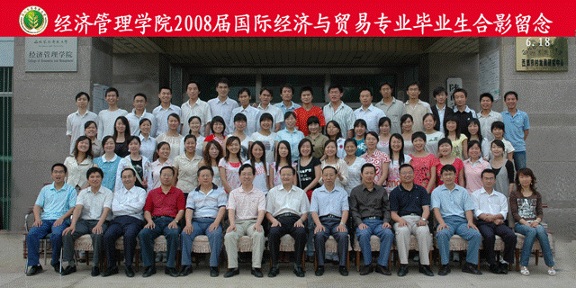 前排从左到右依次为:辅导员郭晓勇、辅导员王家武、系主任吕德宏、副院长温晓林、院党委副书记聂海、副院长李录堂、 院党委书记罗剑朝、院长霍学喜、副院长孟全省、副院长姚顺波、班主任曲云峰、班主任牛荣