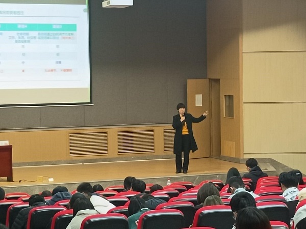 为做好心理服务工作,缓解同学们的学习压力,帮助保持自尊自信、理性平和、积极向上的健康心态,3月25日,学院邀请心理中心辅助金花老师于C101报告厅面向全院学生举办了“心理健康,幸福生活”主题讲座。