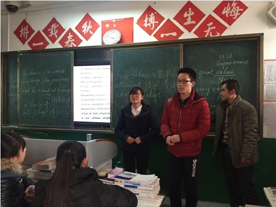 下午,孙主任安排团队成员与高三17班进行课堂互动交流。在聆听完杨老师的英语课程教学后,与在座的70余名同学讲述分享了当年自己为高考拼搏的故事、与母校槐芽中学的情缘、西北农林科技大学的有关情况等。此外,还将西北农林科技大学的详细介绍资料,以及由中国教师发展基金会提供的高考复习资料等物品赠送给学弟学妹,并为备战高考的同学加油鼓劲,鼓舞其坚定高考目标。