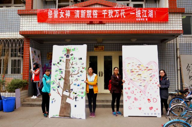 活动分为“打动我的一瞬间”照片征集和“赞美女生,赞美青春”标语创作两个版块。活动前期,由德赢官网女生提交感动自己的照片并附文字说明,男生书写创意标语表达对女生最真挚的祝福。标语征集完毕后,由女工部进行筛选、排版、制作展览板,并于3月7日在11号女生宿舍楼下进行展示。同学们踊跃参与,积极投稿,德赢官网还为女同学们准备了暖心小礼品。在所有投稿作品中,由14级一男生创作的标语“经管女神,清新脱俗,千秋万代,一统江湖” 最具创意,主办方特制作成横幅挂于女生宿舍楼下,以最特别的方式向德赢官网女生表达最真挚的祝福。