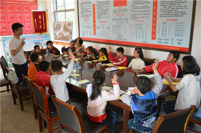 出于对当地教育情况的考虑,本次支教选择了思想观念上的创新性启迪教育。志愿者从自我认同、鼓励进取、开拓眼界三方面引导孩子们树立远大理想和高尚的品德追求。通过让孩子们分别在三张纸上写上自己的优点、未来的理想和为之奋斗的具体方法,引导孩子们学会自我认识、树立目标、制定计划。孩子们展示出了最天真可爱的一面:怀揣篮球梦想的“大力士”、谈起钢琴时两眼放光的小姑娘、热爱数学的“小天才”……志愿者通过和孩子们耐心交谈,了解到大家对未来学习的期望,并根据每个人的具体情况进行有针对性的激励措施,鼓励大家树立客观可行的远大理想。课程最后,志愿者展示讲解中国地图,激发孩子对祖国大好河山的热爱。“只有不断学习文化知识,努力提高自己的综合素质与能力,才能使自己的‘小圈’变成‘大圈’,接触到更多的精彩世界”,志愿者如是说。