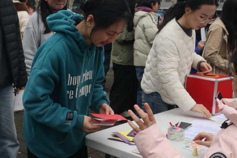 心愿墙活动成为现场兼具温度与意义的亮点环节,同学们纷纷驻足执笔,在精美卡片上写下消费安全的期许、校园生活的美好心愿,一张张满载心意的卡片被有序悬挂成流动的心愿墙,既让大家在书写与分享中定格校园幸福瞬间,更将维权安心、生活舒心的美好期许融入其中,让消费维权的初心与感知幸福的暖意,在字里行间悄然传递。