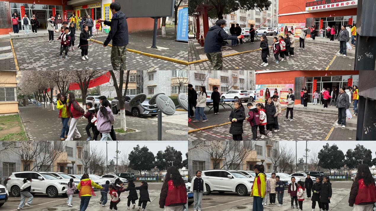 手工环节结束后,志愿者们带着孩子们来到社区楼下空地,开展了丰富多彩的趣味游戏活动。活力满满的跳绳比赛、“老鹰抓小鸡”、“老狼老狼几点了”等经典趣味游戏,让现场充满了欢声笑语。孩子们肆意奔跑嬉戏,志愿者们全程暖心陪伴,在朝夕相伴中进一步拉近了彼此的距离,让雷锋精神在点滴陪伴中温暖传递。