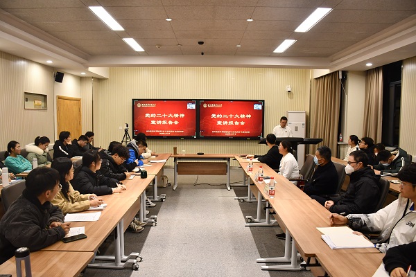 张丽以题为《迈上全面建设社会主义现代化国家新征程——深入学习贯彻党的二十大精神》为大家做专题宣讲,从大会主题、过去5年的工作和新时代十年伟大变革、马克思主义中国化时代化新境界、中国式现代化推进民族复兴、社会主义现代化强国建设的任务、全面从严治党和对青年的殷切期望等方面,深刻阐述了建党精神32个字的时代意义,对党的二十大提出的新思想新论断、作出的新部署新要求,作了全面、系统、深入的阐释解读。王赟作总结讲话,他对全体党员提出三点要求,一是切实强化学思践悟,增强学习自觉,二是切实强化组织安排,进行周密部署,三是切实强化学用结合,坚持知行合一。