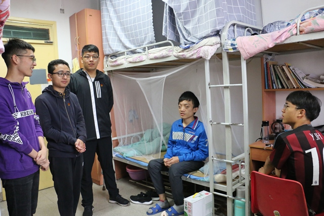 本次活动选取2018级413学生宿舍作为帮扶对象,对在学习和生活上有困难的2018级学生进行帮扶。党员们带着礼品共同前往413宿舍关心2018级身体情况特殊的张文卓同学,从生活习惯、适应环境和学习等多个方面询问了他的情况,了解他目前存在的困难,预备党员葛俊良作为他的第一帮扶人,今后将为他提供学习辅导。预备党员申国祥作为学院学生会生活部副部长,他将安排学生干部在雨雪天陪护上下课和帮忙打热水等生活小事上为行动不便的张文卓提供帮助。同时,党员们结合自身学习经历和生活中的阻碍,向宿舍另外两位学习困难的同学提出很多学习建议,预备党员潘嗣同作为2017级专业第一,他建议同学们一定要合理规划时间,制定学习计划,积极参加科创活动。活动最后,党员们与同学们互留联系方式,以便在以后学习和生活中遇到困难时及时展开帮助。