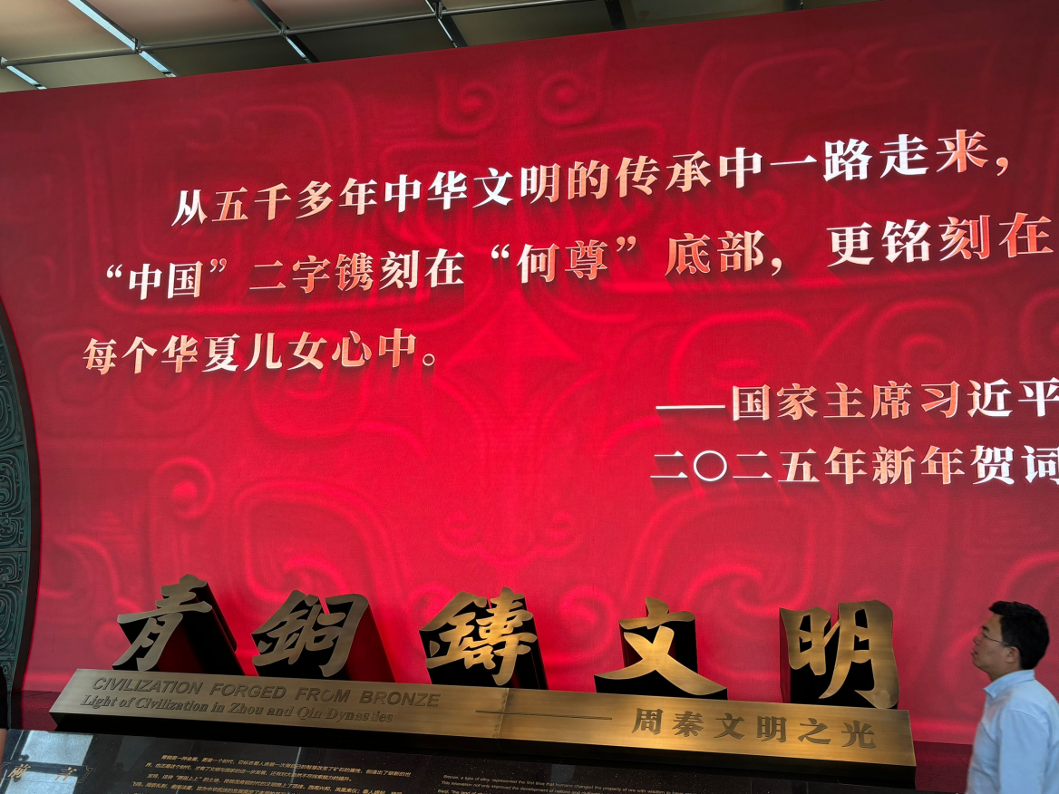 活动首站聚焦西周四十三年逨鼎。这件出土于宝鸡眉县杨家村的国宝级文物,铭文详细记载了周宣王对监察官单逨的廉政训诫,提出“兢兢业业、恪尽职守”“秉公执法、明辨是非”“廉洁自律、不贪不占”等四项要求,堪称中国古代最早的“任前廉政谈话”。讲解员以铭文中的“勤政安民”为引,将其与《乡村振兴促进法》中“传承优秀传统文化”相联结,强调从西周“敬天保民”到当代“乡风文明”,以民为本的治理内核始终未变。党员李卓然感慨道:“青铜器的饕餮纹不仅是艺术符号,更是‘戒贪’的精神图腾。乡村振兴既要激活传统经济价值,更需守护文化基因!”