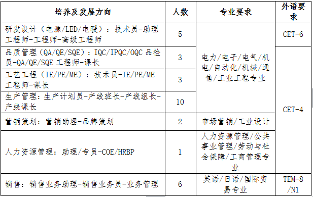 招收优秀的2017届全日制本科应届毕业生,共30人,作为储备干部培养。